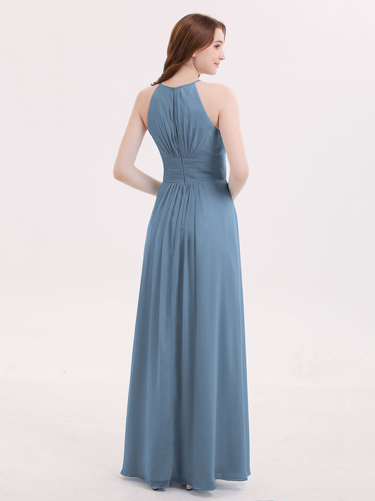 Babaroni JodieJodie Cabestro Cuello Alto Gasa Vestido De Dama De Honor Azul Pizarra