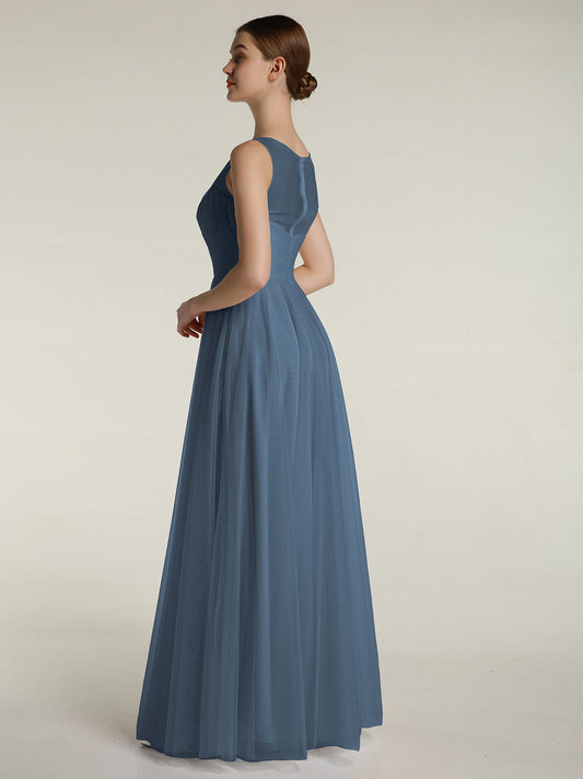 Babaroni EvelynVestidos de tul con espalda convertible y largo hasta el suelo Azul Pizarra