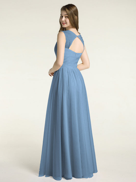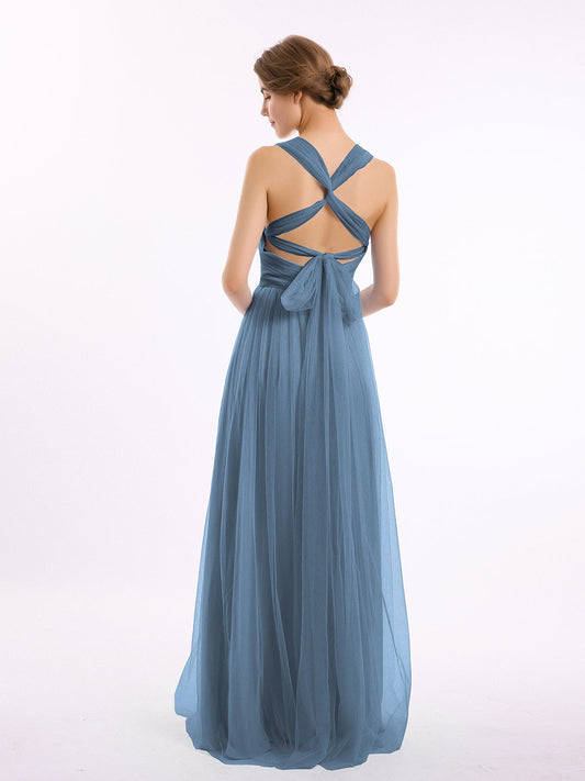 Babaroni EvelynVestidos de tul con espalda convertible y largo hasta el suelo Azul Pizarra