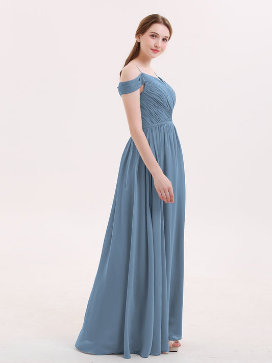 Crea una atmósfera atemporal y clásica con nuestra hermosa colección de vestidos de dama de honor en azul pizarra. Estos tonos versátiles complementarán cualquier tema de boda y crearán un aspecto refinado y elegante.