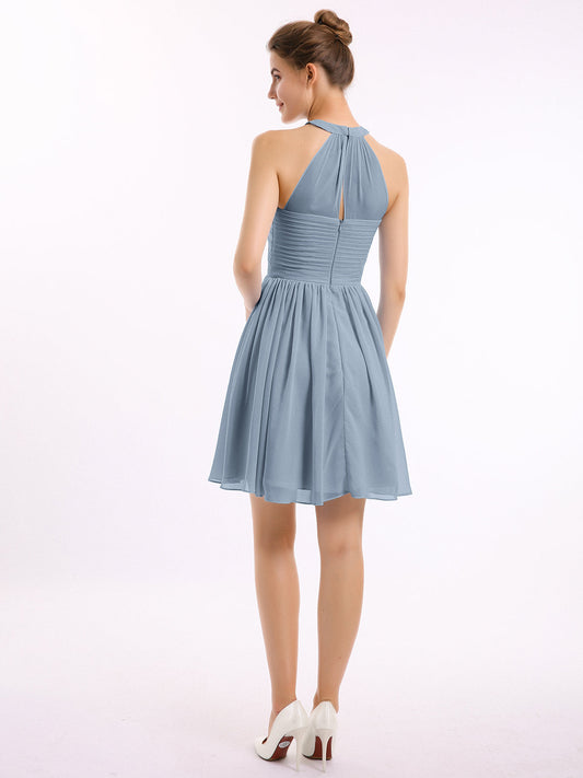 Babaroni KyreneVestidos cortos de chiffon estilo halter para damas de honor Azul Polvoriento