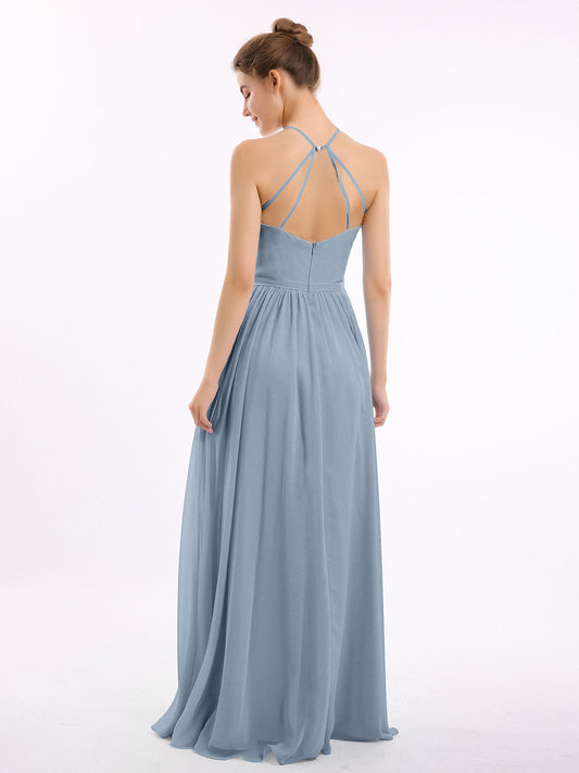 Babaroni LesleyVestidos largos de chiffon estilo halter con doble tirante Azul Polvoriento