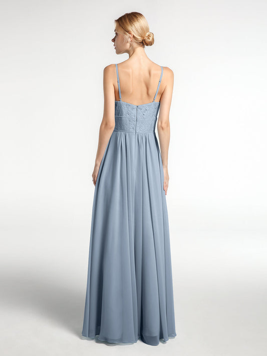 Babaroni CherryVestidos largos de encaje y chiffon con tirantes finos Azul Polvoriento