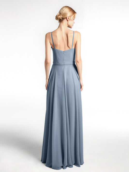 Babaroni EllaVestido sencillo de chiffon con tirantes finos y escote en forma de muesca Azul Polvoriento