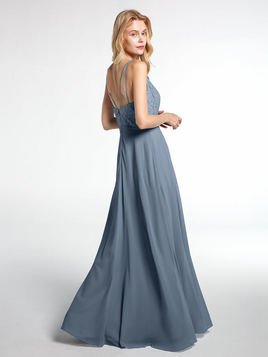 Babaroni LaraineVestido maxi con cuerpo de encaje y falda de chiffon con escote en V Azul Polvoriento