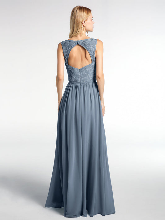 Babaroni LaraineVestido maxi con cuerpo de encaje y falda de chiffon con escote en V Azul Polvoriento