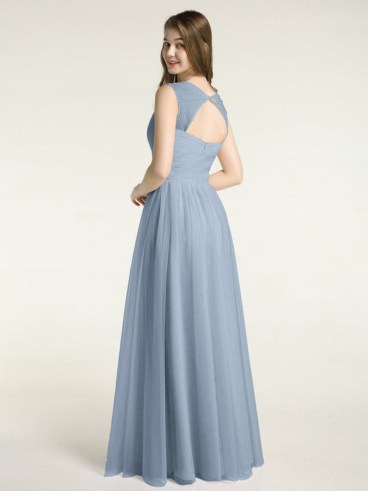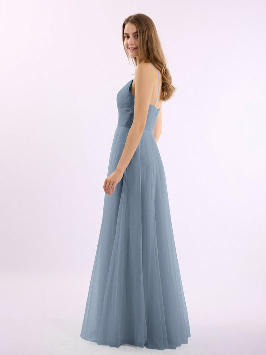 Babaroni EvelynVestidos de tul con espalda convertible y largo hasta el suelo Azul Polvoriento