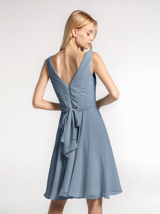 Babaroni ShirleyShirley Escote En V Gasa Corto Vestidos De Dama De Honor Azul Polvoriento