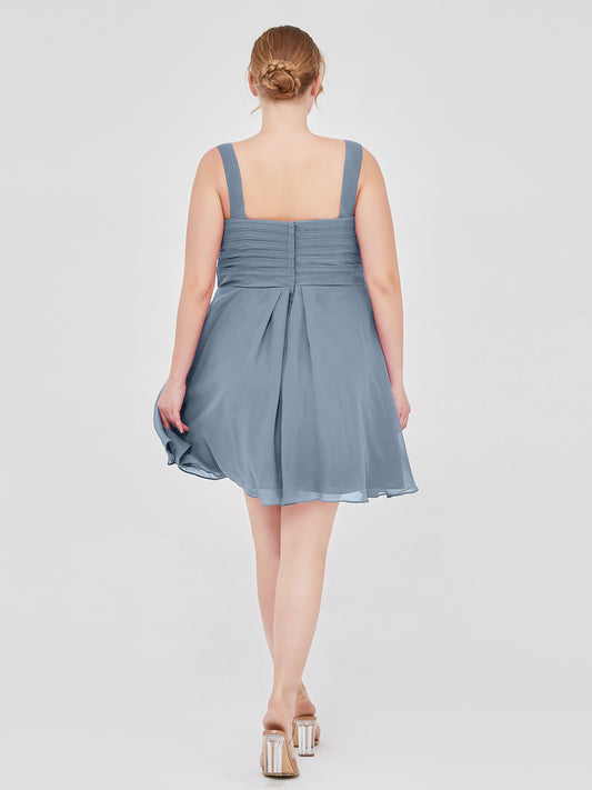 Babaroni DelphineDelphine Cabestro Novio Gasa Vestidos Cortos Azul Polvoriento
