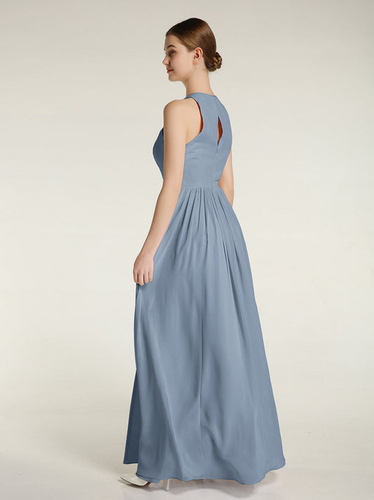 Babaroni LaurenVestidos largos de chiffon estilo princesa con abertura Azul Polvoriento