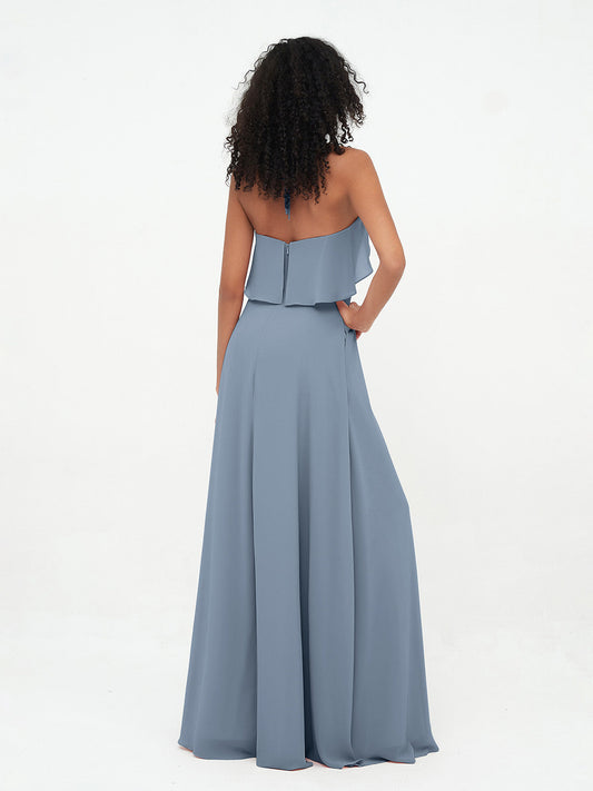 Babaroni AmyVestidos largos de dama de honor de chiffon con tirantes de cuello halter Azul Polvoriento