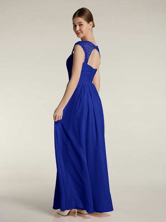 Babaroni HelenVestidos de chiffon con escote en corazón y mangas cap de encaje Azul Royal