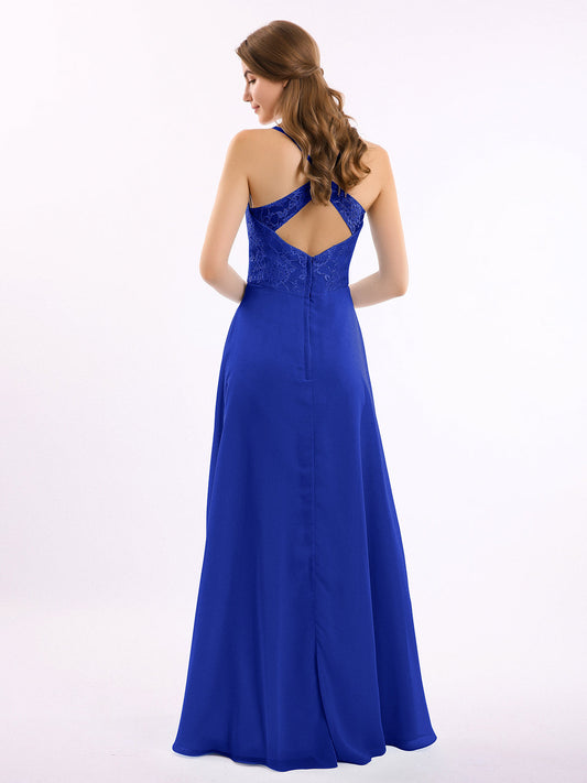 Babaroni LucilleVestidos largos de chiffon con encaje en escote en V profundo y espalda descubierta Azul Royal