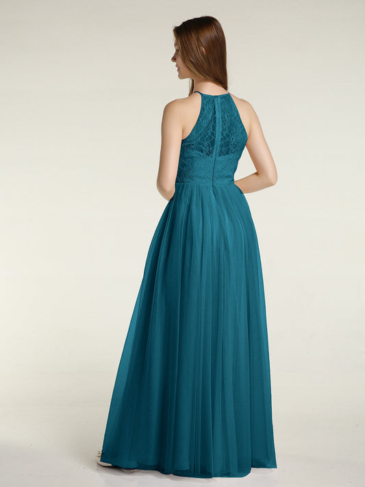 Babaroni TinaVestidos largos con cuerpo de encaje y falda de tul Azul tinta