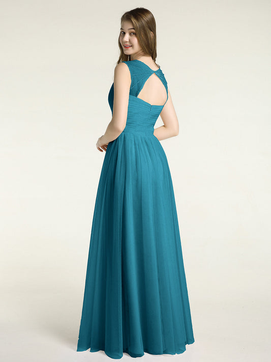 Babaroni JudyVestidos de chiffon con escote en V y tirantes decorados con cuentas Azul tinta