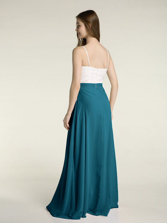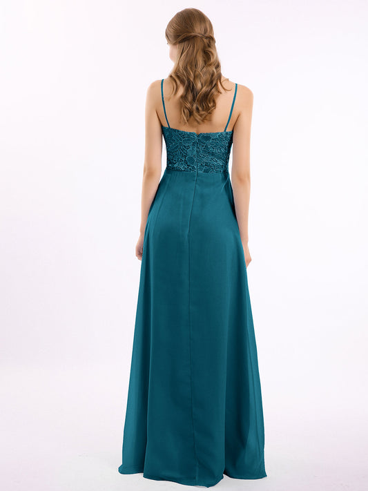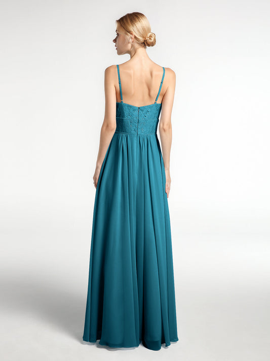 Babaroni CherryVestidos largos de encaje y chiffon con tirantes finos Azul tinta
