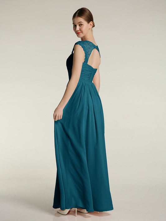 Babaroni HelenVestidos de chiffon con escote en corazón y mangas cap de encaje Azul tinta