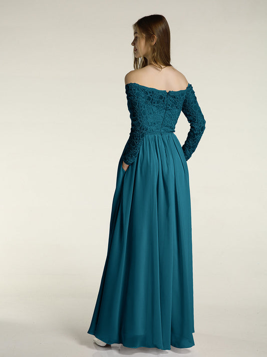 Babaroni SuzanneSuzanne Encaje Largo Vestido Con Novio Espejismo Azul Tinta