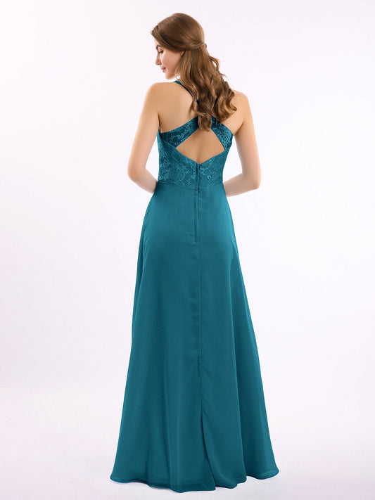 Babaroni LucilleVestidos largos de chiffon con encaje en escote en V profundo y espalda descubierta Azul tinta