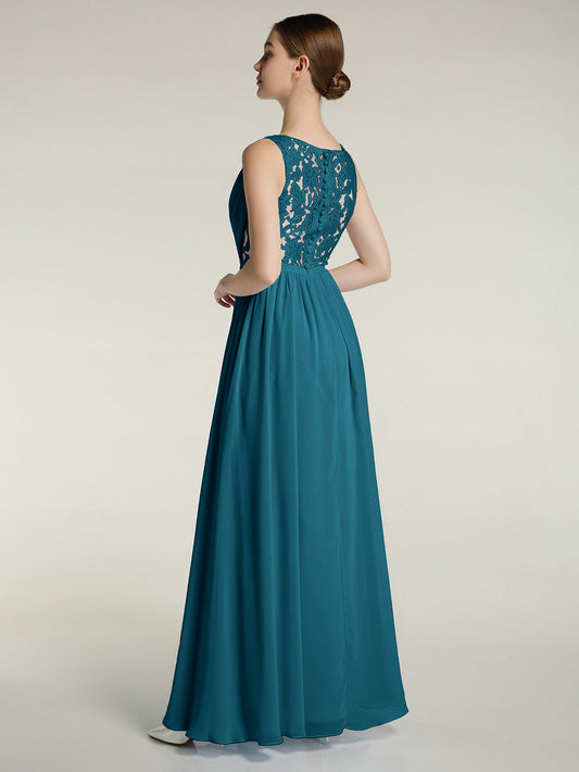 Babaroni MariaVestidos largos de chiffon de cuello en Y para damas de honor Azul tinta