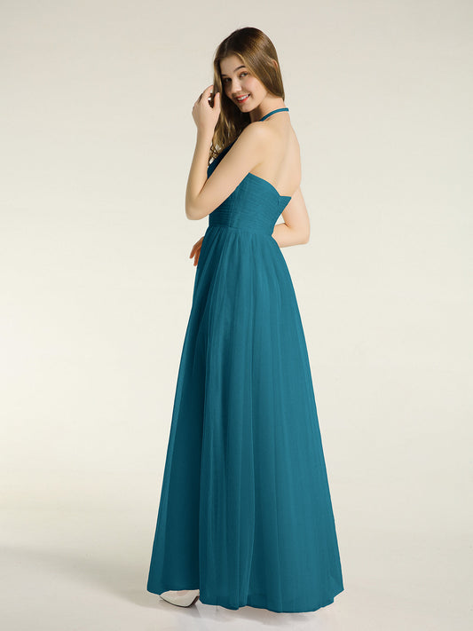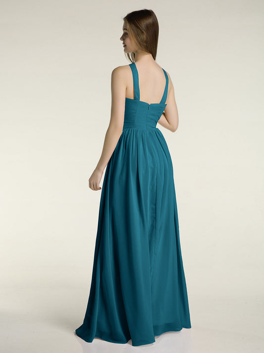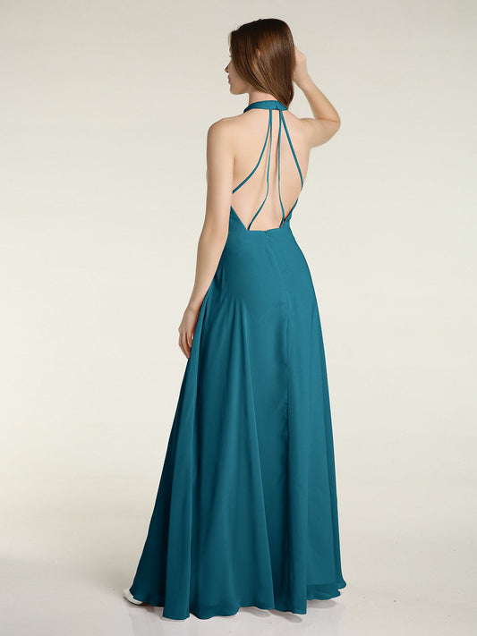 Babaroni TheraVestidos largos de dama de honor estilo halter de chiffon con espalda baja Azul tinta