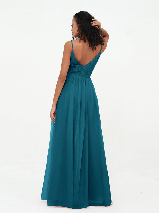 Babaroni MarjorieVestidos largos de tul plisado con tirantes spaghetti Azul tinta