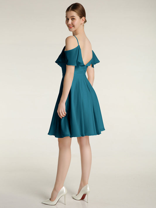 Rita Escote En V Gasa Corte De Dama De Honor Con Falda En Cascada Azul Tinta