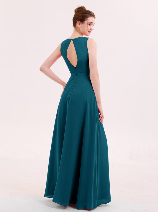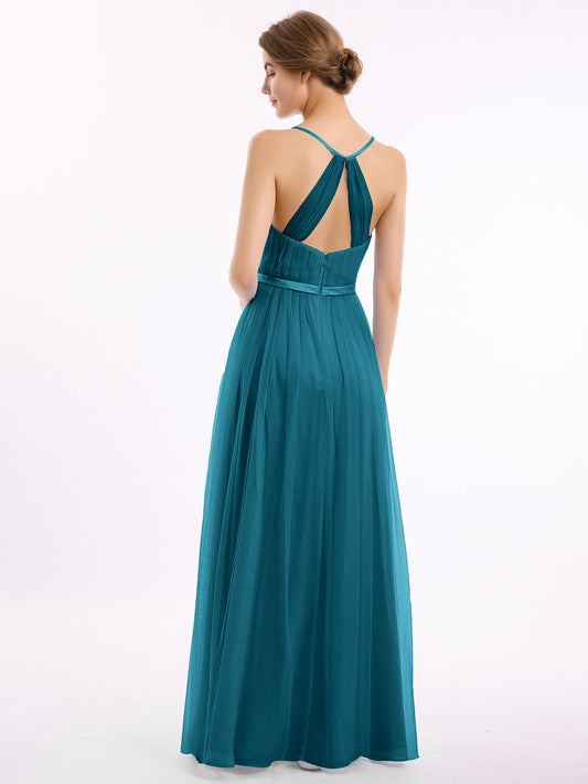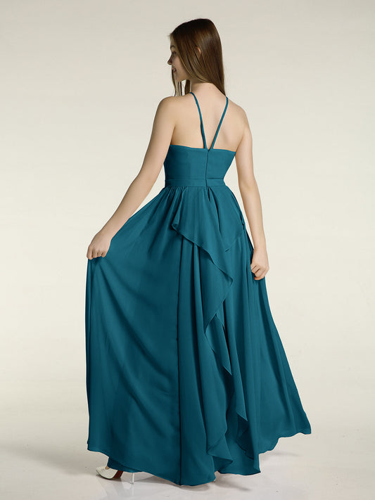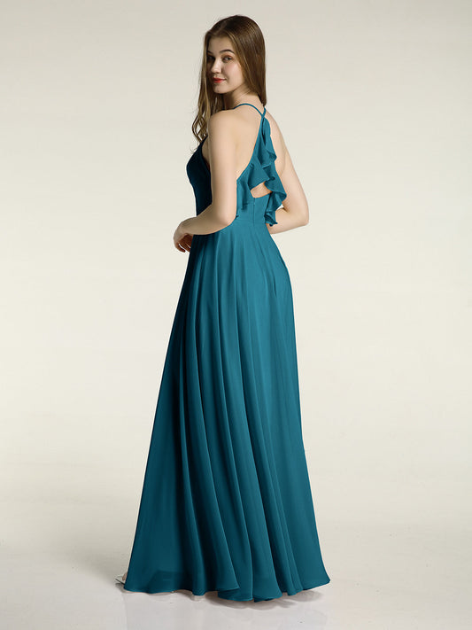Vestidos largos de dama de honor estilo halter de chiffon Azul tinta