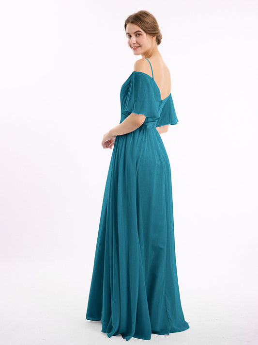 Babaroni LeeVestidos de dama de honor de chiffon con tirantes spaghetti y escote en V Azul tinta