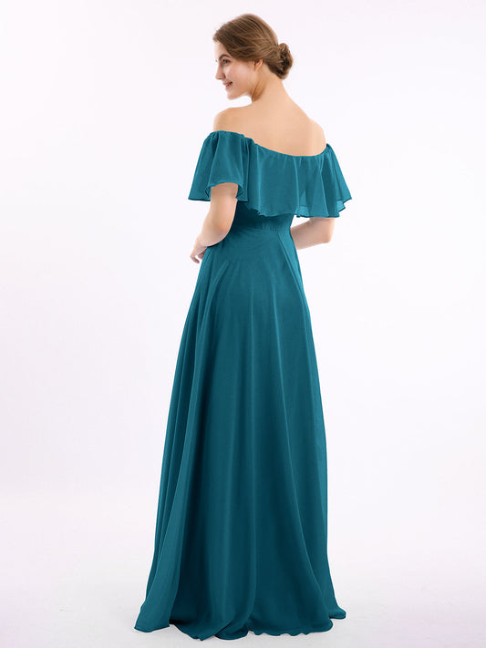 Babaroni HazelVestido largo de chiffon con hombros descubiertos Azul tinta