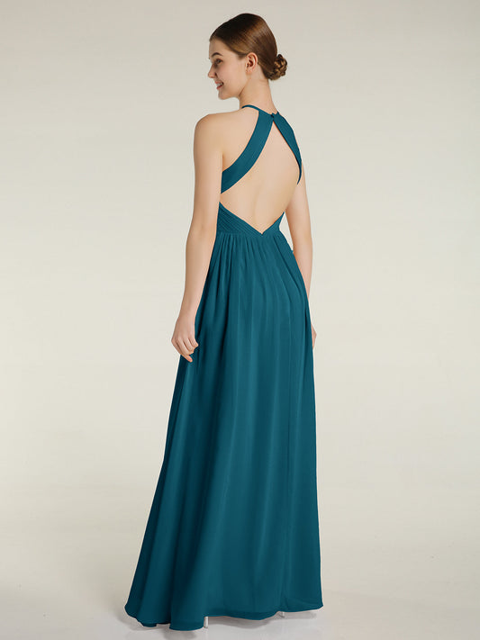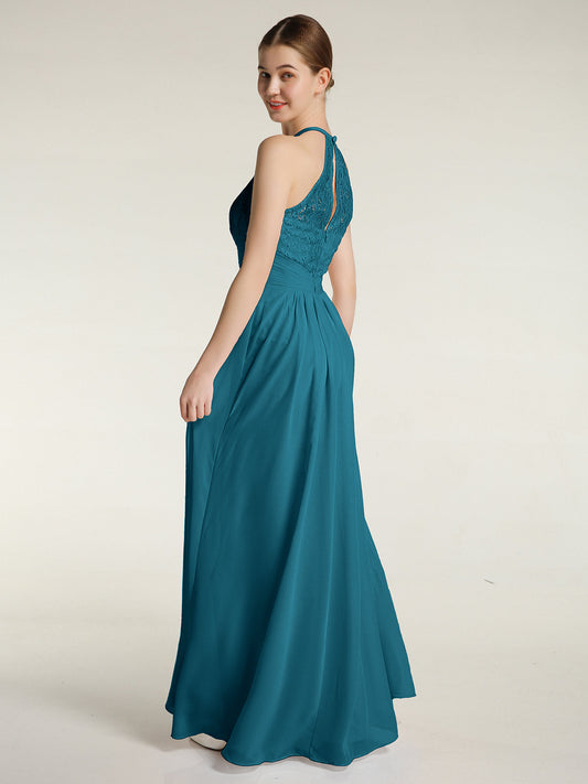 Babaroni AmandaVestidos largos de chiffon y encaje estilo halter Azul tinta