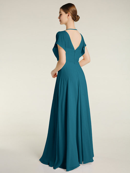 Babaroni AprilVestido sencillo de chiffon estilo halter con abertura Azul tinta