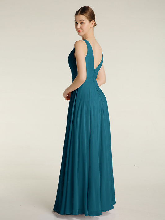 Babaroni CarolVestidos sencillos de chiffon con escote en V Azul tinta