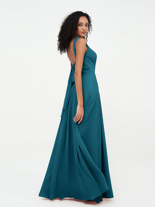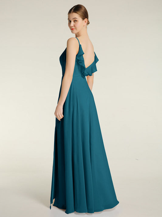 Babaroni VitaVestido de dama de honor de chiffon con escote en V y espalda descubierta Azul tinta