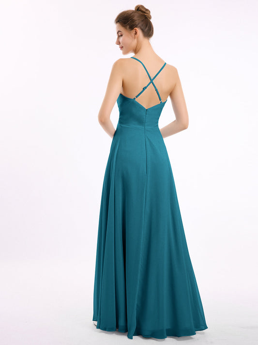 Babaroni FeliciaVestidos largos de chiffon con tirantes finos y escote en corazón Azul tinta