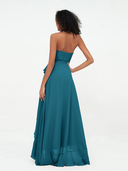 Babaroni VenusVestidos asimétricos de chiffon con cuello halter y escote en V profundo Azul tinta