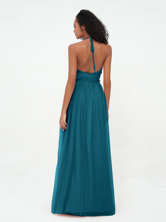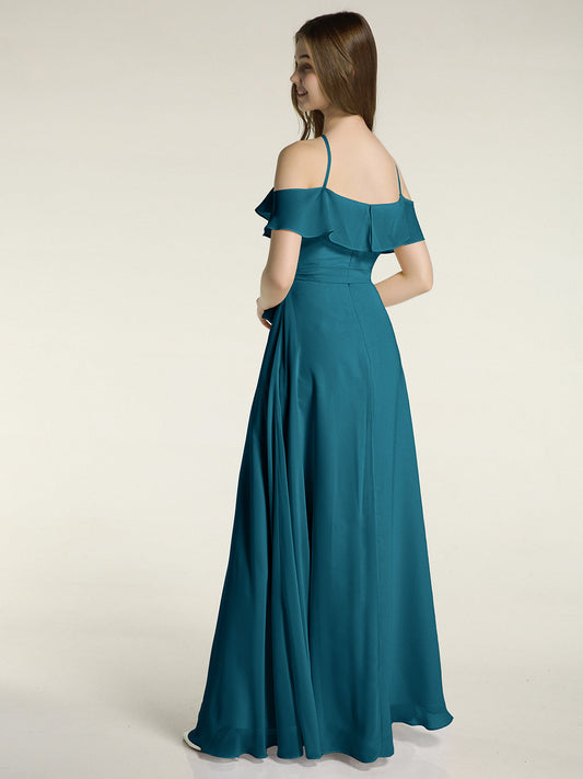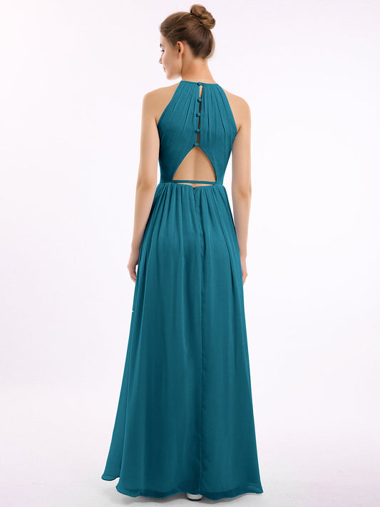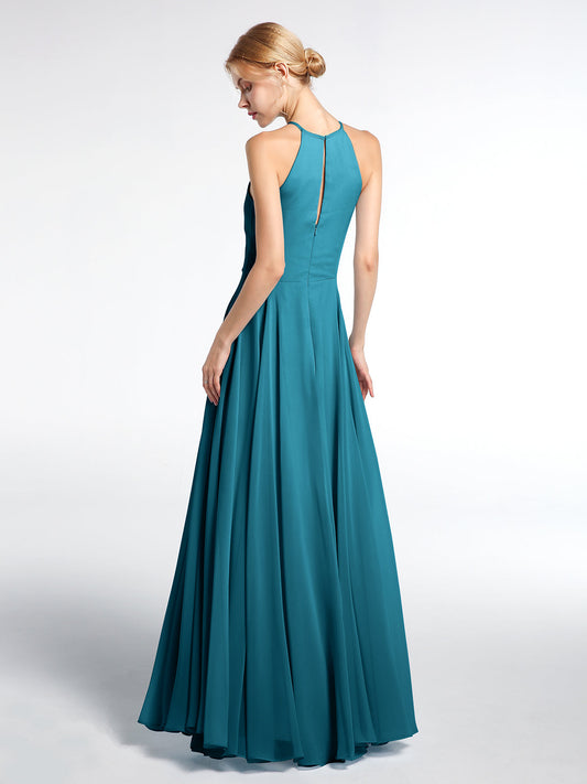 Babaroni MandyVestidos largos de chiffon estilo halter para damas de honor Azul tinta
