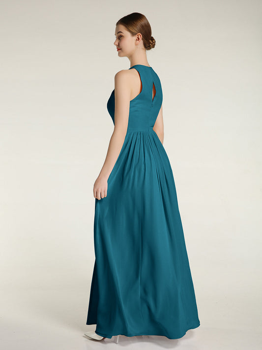 Babaroni AprilVestido sencillo de chiffon estilo halter con abertura Azul tinta