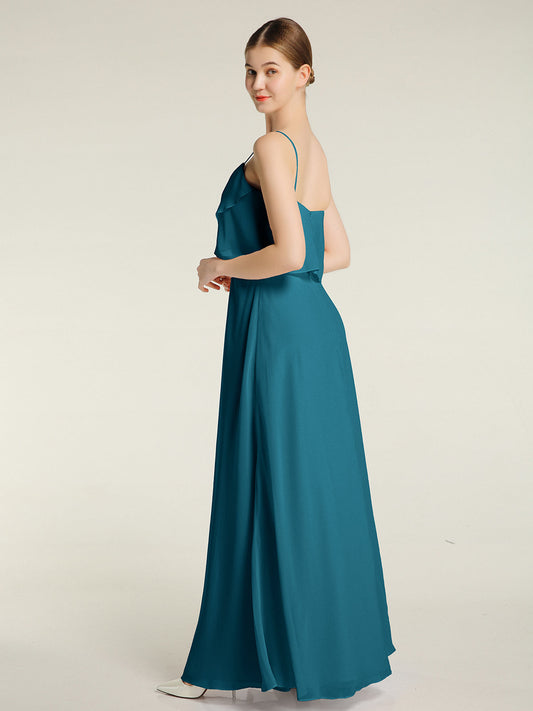 Babaroni GraceVestidos sencillos de dama de honor con tirantes finos Azul tinta