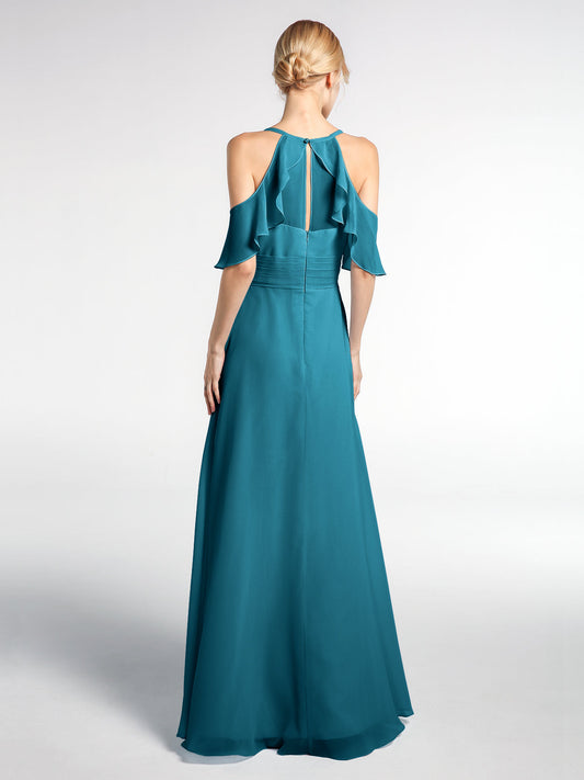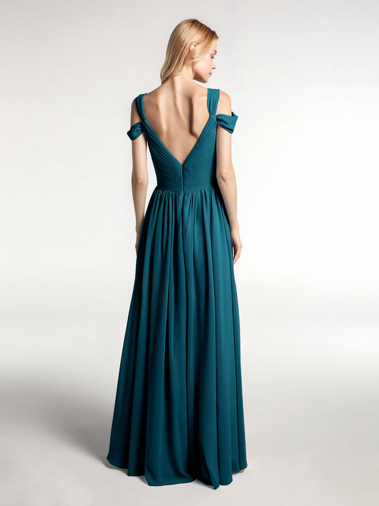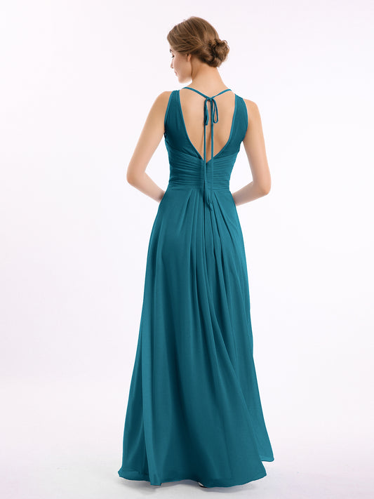 Babaroni HedyVestido largo de chiffon con escote en forma de V y cintura imperio Azul tinta