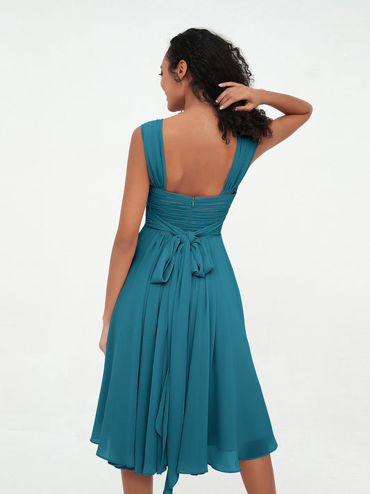 Babaroni EthelEthel Cruzado Delante Imperial Cintura Corto Vestido De Dama De Honor Azul Tinta