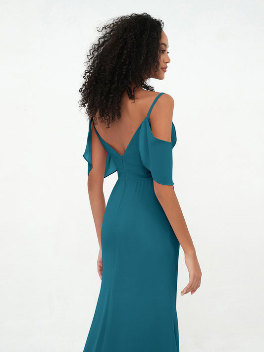 Babaroni YettaVestidos de columnas con tirantes spaghetti y abertura Azul tinta