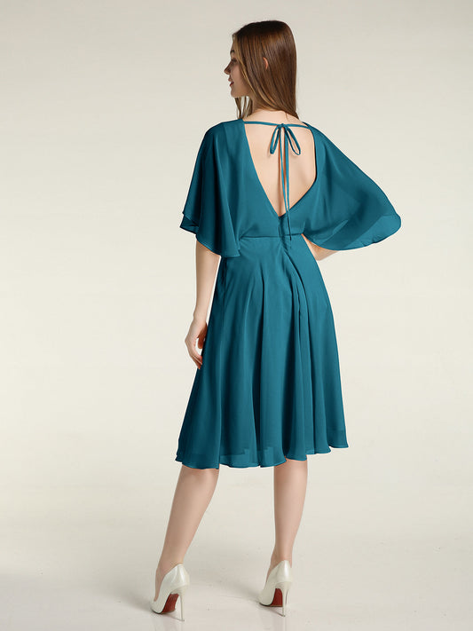 Babaroni ZonaVestido de chiffon con escote en V y mangas media longitud, a la altura de la rodilla Azul tinta
