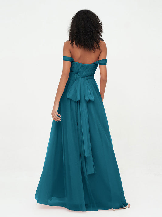 Babaroni EvelynVestidos de tul con espalda convertible y largo hasta el suelo Azul tinta