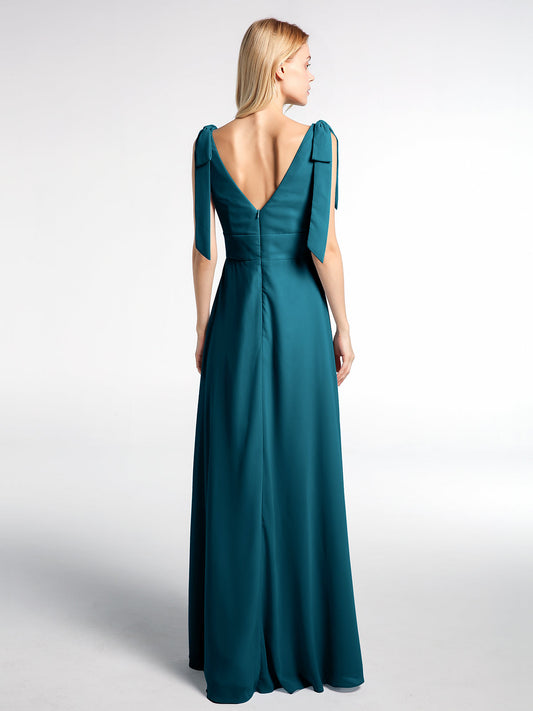 Babaroni CassiopeiaCassiopeia Escote En V Gasa Largo Vestido Con Arco Azul Tinta