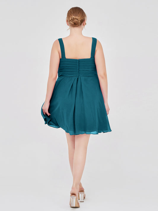 Babaroni PenelopePenelope Escote En V Gasa Corto Vestido De Dama De Honor Azul Tinta