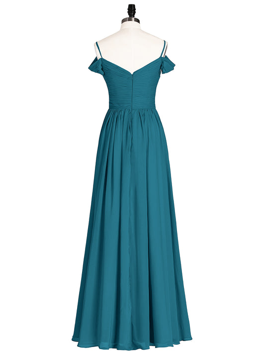 Babaroni VivienVivien Hombro Tirante Encaje Y Gasa Largo Vestido Azul Tinta