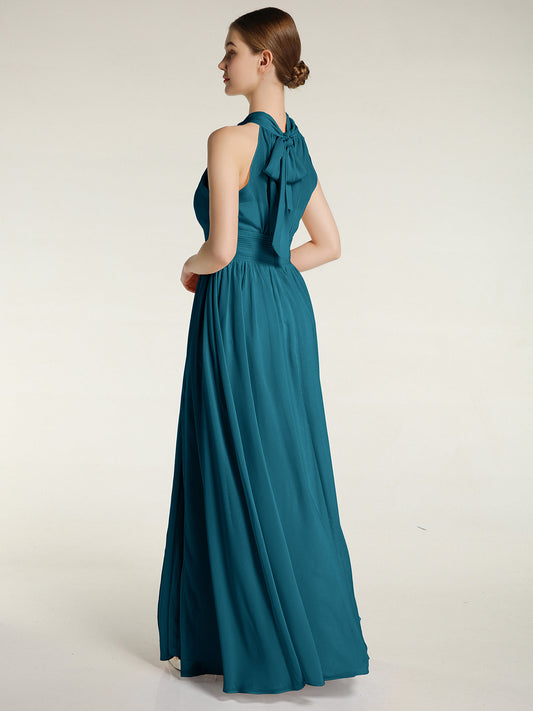 Babaroni BlancheVestido largo de chiffon con escote en forma de cerradura y espalda descubierta Azul tinta