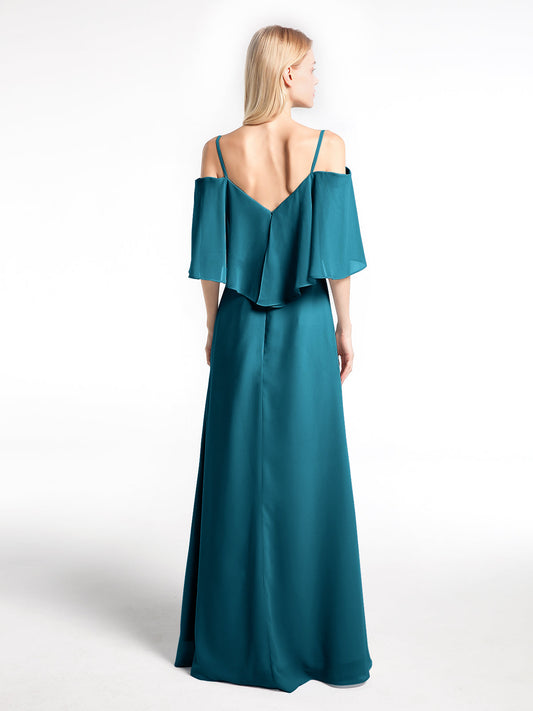 Babaroni MaudSencillos vestidos largos de chiffon con tirantes finos y abertura Azul tinta