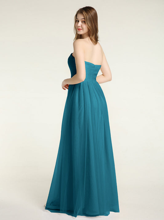 Babaroni ViolaVestidos largos de dama de honor sin tirantes con escote en corazón y falda de tul Azul tinta